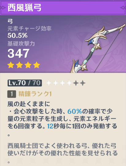 ☆5天空の翼>☆4西風猟弓、☆4絶弦